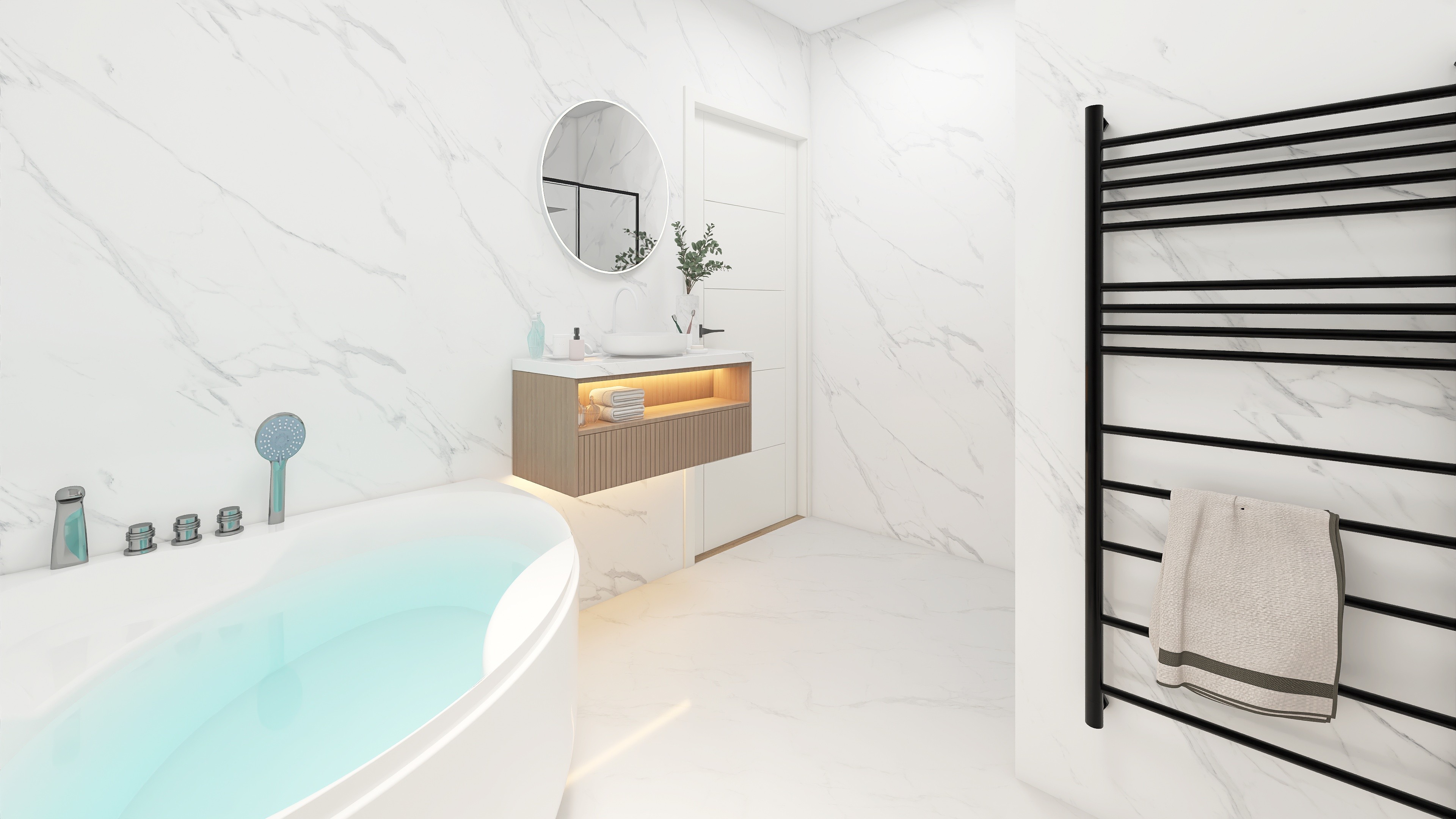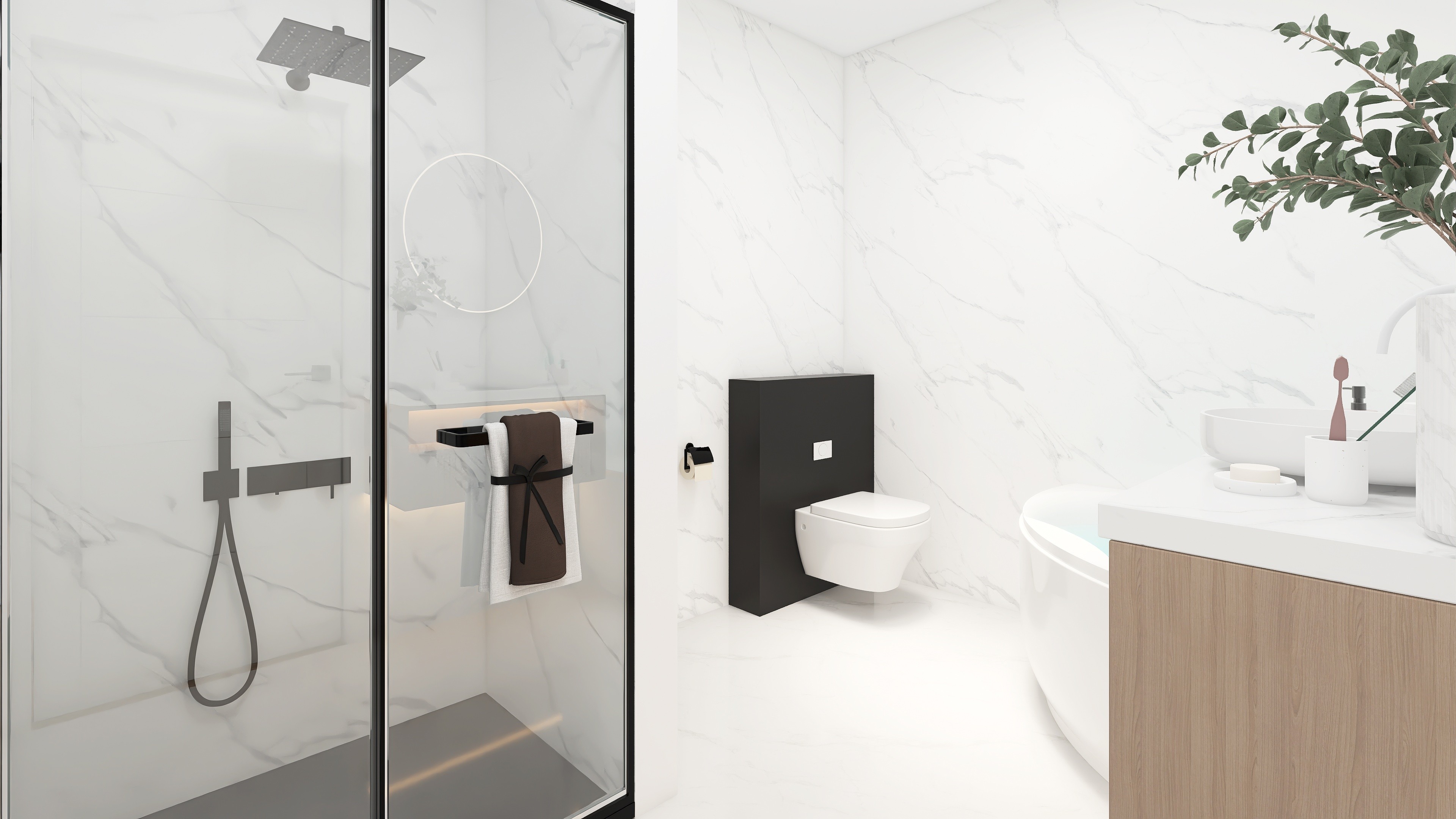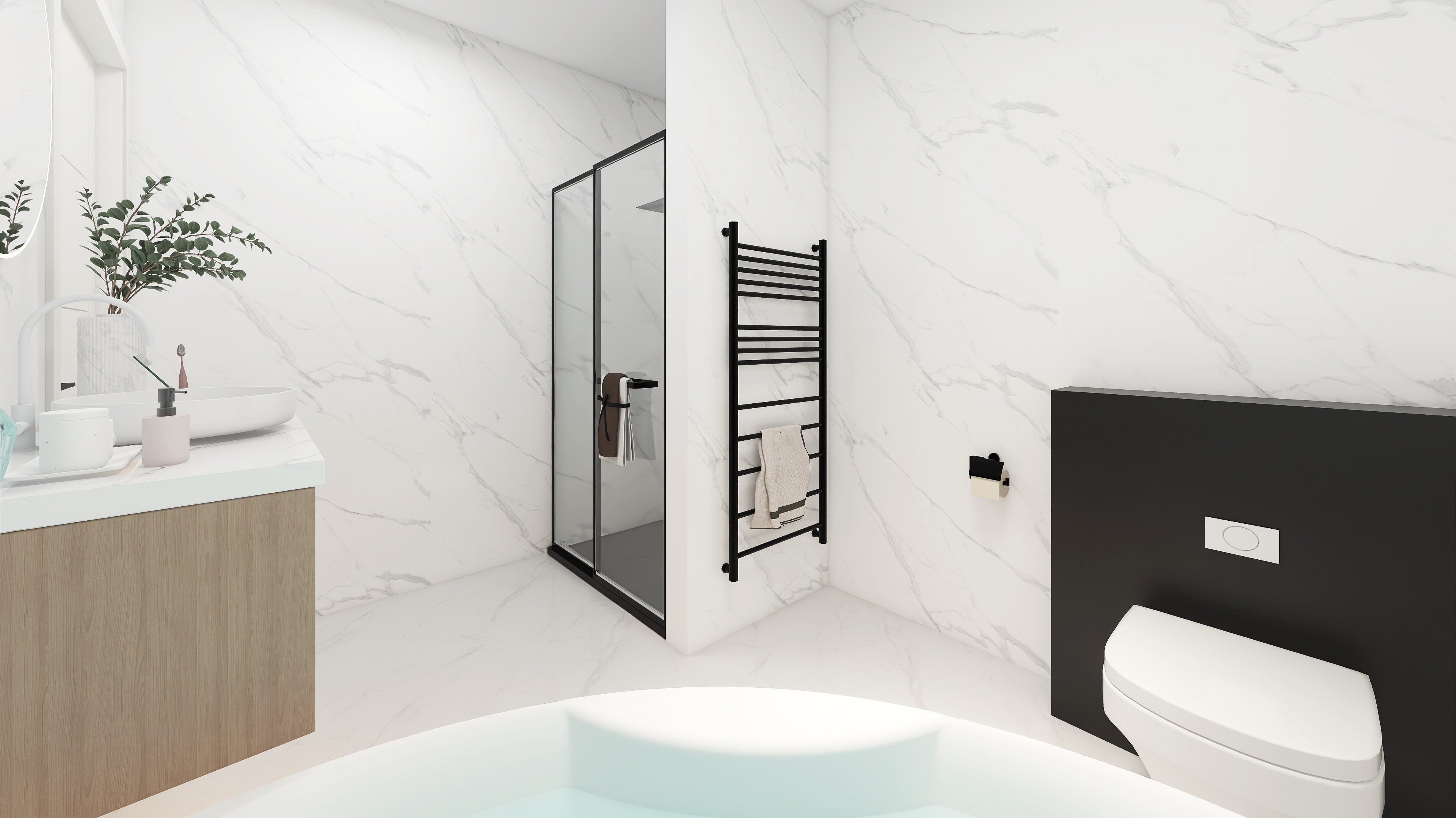 Koupelna jako soukromá zóna klidu a regenerace. Čistý design a funkční řešení pro každodenní pohodu.